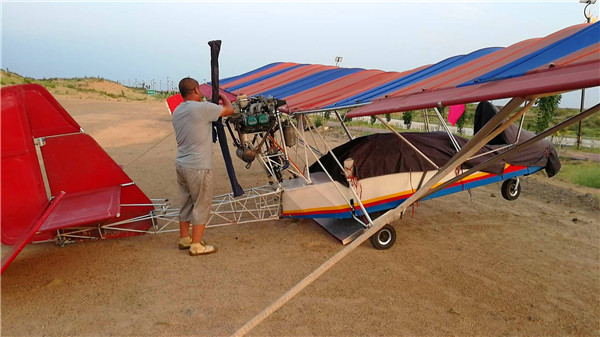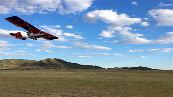 2018.7.13至2018.7.25日,通遼市神鷹通用航空有限公司在奈曼旗白音塔拉鎮(zhèn)寶古圖沙漠旅游區(qū)進(jìn)行飛播。圖為公司A2C飛機(jī)進(jìn)行飛播。